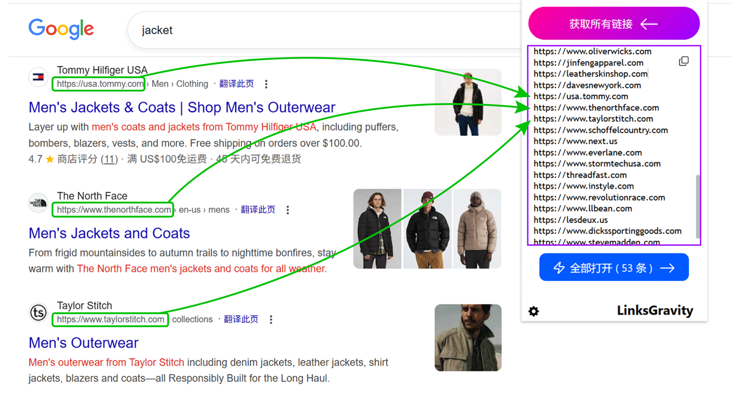 依次批量获取谷歌每页的官网(插件顶部按钮)
